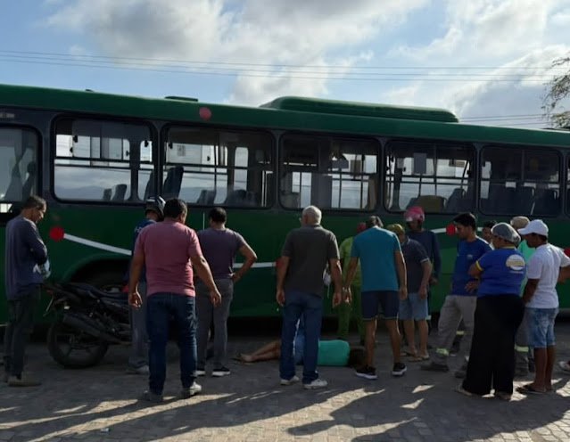 Jacobina: Colisão entre motocicleta e ônibus deixa pessoa ferida no bairro da Catuaba