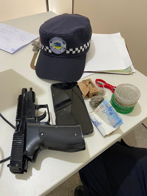 A Guarda Civil Municipal de Jacobina apreendeu, na tarde de domingo, 9 de novembro de 2025, pequenas porções de droga e um simulacro de arma de fogo durante uma ação no Parque da Macaqueira. A ocorrência foi registrada por volta das 14h30, após denúncia de frequentadores do local. De acordo com informações da corporação, os agentes foram informados sobre um homem que estaria ameaçando pessoas e exibindo o que aparentava ser uma arma. Ao chegar ao local, a equipe identificou o suspeito como Rafael Portugal dos Santos Lima, que tentou fugir ao perceber a aproximação dos guardas, mas foi imobilizado. Durante a revista, os agentes encontraram em uma bolsa tipo necessaire várias trouxinhas de substância semelhante à maconha, R$ 10 em espécie, uma tesoura dobrável, um rolo de papel, um celular Xiaomi Redmi Note 9 Pro e um simulacro de pistola. Rafael e o material apreendido foram encaminhados à Delegacia de Polícia Civil de Jacobina, onde o caso foi registrado pelo delegado de plantão. Segundo a Guarda Civil, a ação integra o trabalho de patrulhamento preventivo no parque, com foco em coibir o tráfico e aumentar a segurança de frequentadores. Fonte: Célio Notícias/GCM Jacobina