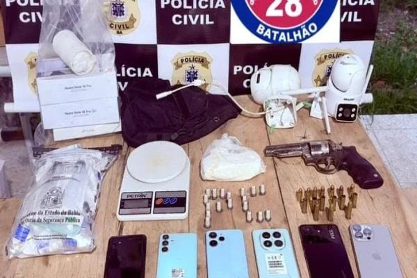 Um vereador foi preso em flagrante por tráfico de drogas e associação ao tráfico, na última terça-feira (11), no município de Itabela, na Bahia. A prisão aconteceu durante uma operação para cumprir mandados judiciais de prisão e busca e apreensão contra um homem investigado por tráfico de drogas. O alvo da operação era um homem identificado pelas iniciais P.A.D.O. com extenso histórico criminal. O suspeito conseguiu fugir, e ao ser localizado efetuou disparos de arma de fogo contra os agentes de segurança, que revidaram e atingiram o rapaz. O suspeito foi socorrido para o Hospital Frei Ricardo, em Itabela, onde o óbito foi constatado. Além dele, uma terceira pessoa identificada com as iniciais C.S.R. também estavam na residência. Ele e o vereador foram conduzidos à Delegacia para os procedimentos legais. Além das prisões efetuadas, a polícia apreendeu arma, munições, pinos e tabletes de cocaína. O vereador Lucas Lemos, do União Brasil, também foi preso. Até o momento, a Câmara Municipal de Itabela não se manifestou a respeito do caso. O delegado responsável pelo caso, Jonhson Tanimoto, explicou durante uma entrevista a um portal local, que parte da operação corre em segredo de justiça e revelou que o vereador foi detido para prestar esclarecimentos sobre o que fazia na casa no momento da busca e apreensão. Fonte: BNews