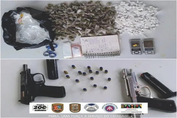 Dupla morre em confronto com a PM em Morro do Chapéu (BA); pistolas e drogas foram apreendidas