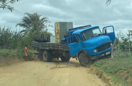 Caminhão de distribuidora perde o controle e deixa feridos em estrada vicinal entre Alto do Capim e Maracujá
