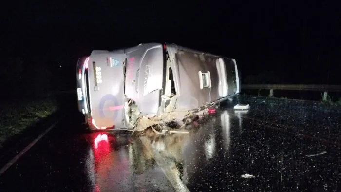 Ônibus da empresa Rota tomba na BR-116 Sul e passageiros ficam feridos
