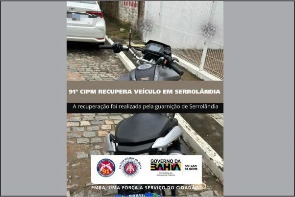 Uma motocicleta com sinais de adulteração foi apreendida nesta quarta-feira (25), durante patrulhamento realizado por uma guarnição da 91ª CIPM na zona rural de Serrolândia. O veículo foi localizado abandonado às margens da estrada vicinal que conecta a sede do município ao povoado do Maracujá. Durante a inspeção, os policiais constataram indícios de adulteração tanto no número do chassi quanto no motor. Como não havia condutor no local e diante da suspeita de possível restrição por furto ou roubo, a motocicleta foi apreendida e apresentada na delegacia da cidade, onde serão adotadas as providências legais cabíveis. Segundo a Polícia Militar, a ocorrência integra as ações rotineiras desenvolvidas com o objetivo de combater a criminalidade e coibir a circulação de veículos irregulares na região. Fonte: FR Notícias | com informações: 91ª CIPM