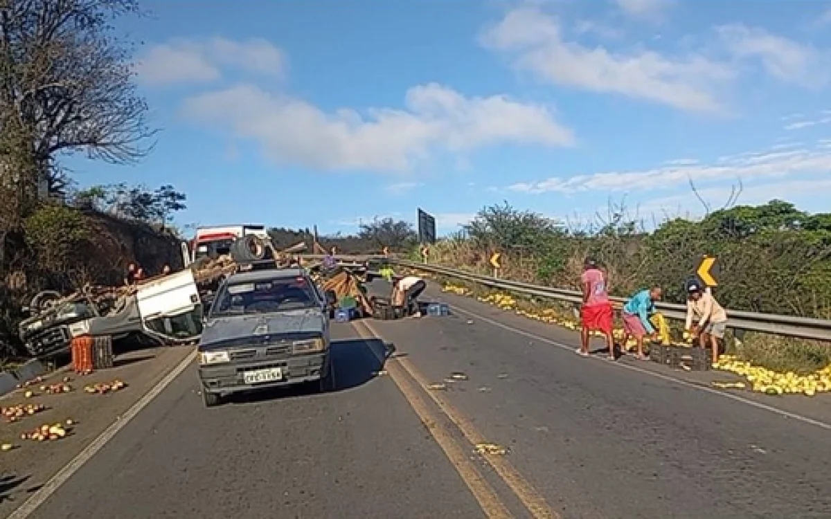 Um caminhão que transportava manga e maracujá tombou na manhã desta terça-feira (18/11) ao descer a chamada Ladeira do Abacaxi, área urbana da BR-420 em Jaguaquara, no Vale do Jiquiriçá, entrada da cidade.