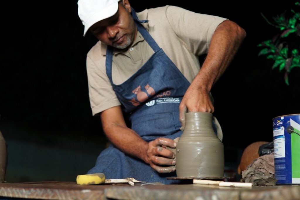 Além disso, foram confeccionadas bases para tornos móveis, contribuindo para o fortalecimento da infraestrutura do ateliê comunitário e para a melhoria das condições de produção. As ações integram uma estratégia mais ampla de organização e qualificação da atividade artesanal no território.