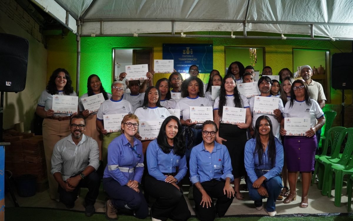 O Projeto Cultura e Transformação – Cerâmica do Pontilhão realizou, na quarta-feira (25), a cerimônia de encerramento de sua primeira etapa, com a entrega de certificados aos 20 participantes. O evento foi realizado na sede da Escola de Cerâmica, na comunidade do Pontilhão, marcando a conclusão de um ciclo formativo voltado à qualificação técnica e ao fortalecimento da produção artesanal local. A iniciativa tem o patrocínio da Jacobina Mineração Pan American Silver e Instituto Pan American Silver, por meio da Lei de Incentivo à Cultura.