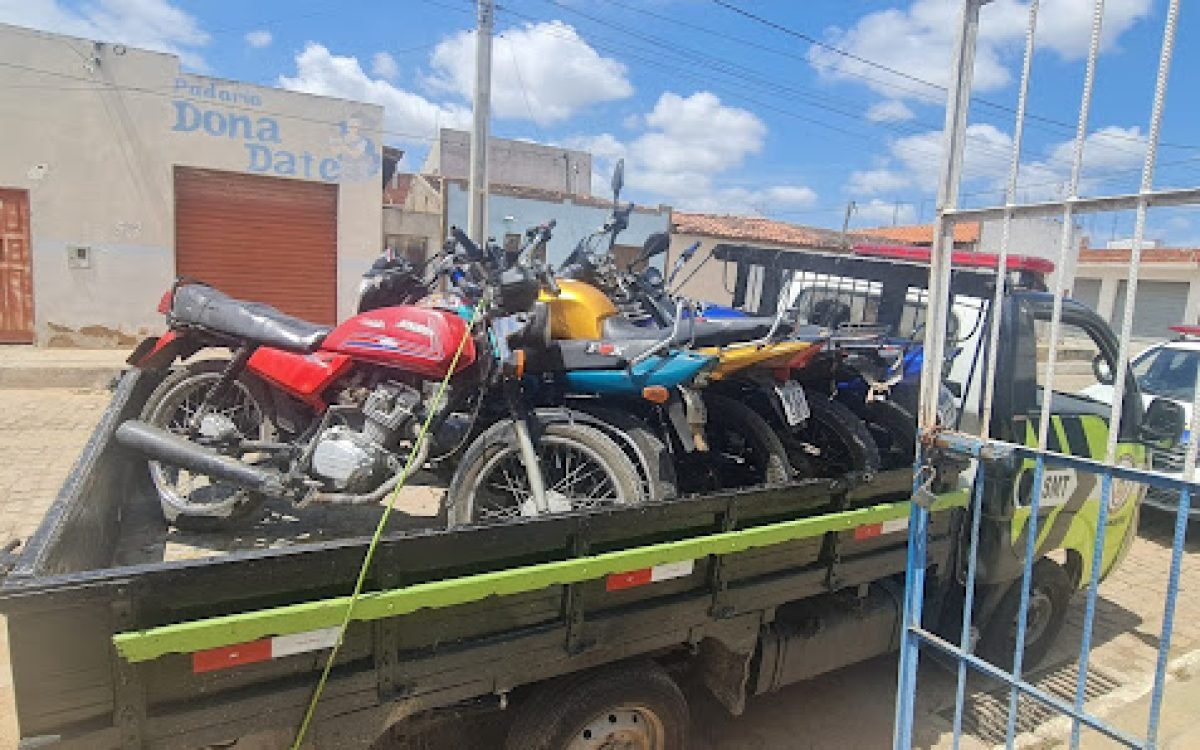 Cinco motocicletas foram apreendidas pela Guarda Civil Municipal de Jacobina no último final de semana nos distritos de Caatinga do Moura e Lages do Batata. Entre as irregularidades, foram identificadas motos com descargas adulteradas, além de condutores sem habilitação e praticando direção perigosa, em ações que vinham trazendo transtornos aos moradores.