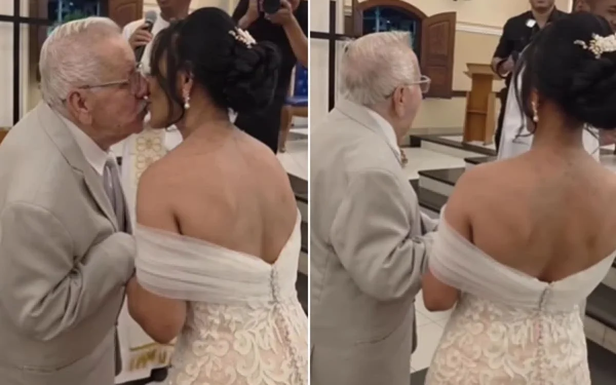 O casamento aconteceu no último sábado (14), na igreja matriz da cidade. O noivo entrou no local acompanhado pelas filhas e seguiu até o altar, onde encontrou a noiva. A cena foi marcada por emoção e aplausos dos convidados.
