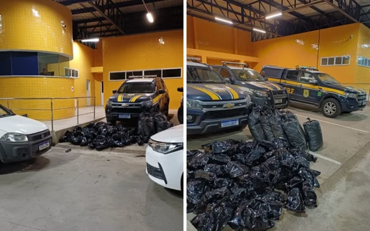 Ao conduzir os veículos até o posto da PRF, os agentes iniciaram uma vistoria minuciosa e encontraram no interior da Fiat Strada uma grande quantidade de substância semelhante à maconha. Após a pesagem, o material totalizou 109 quilos.