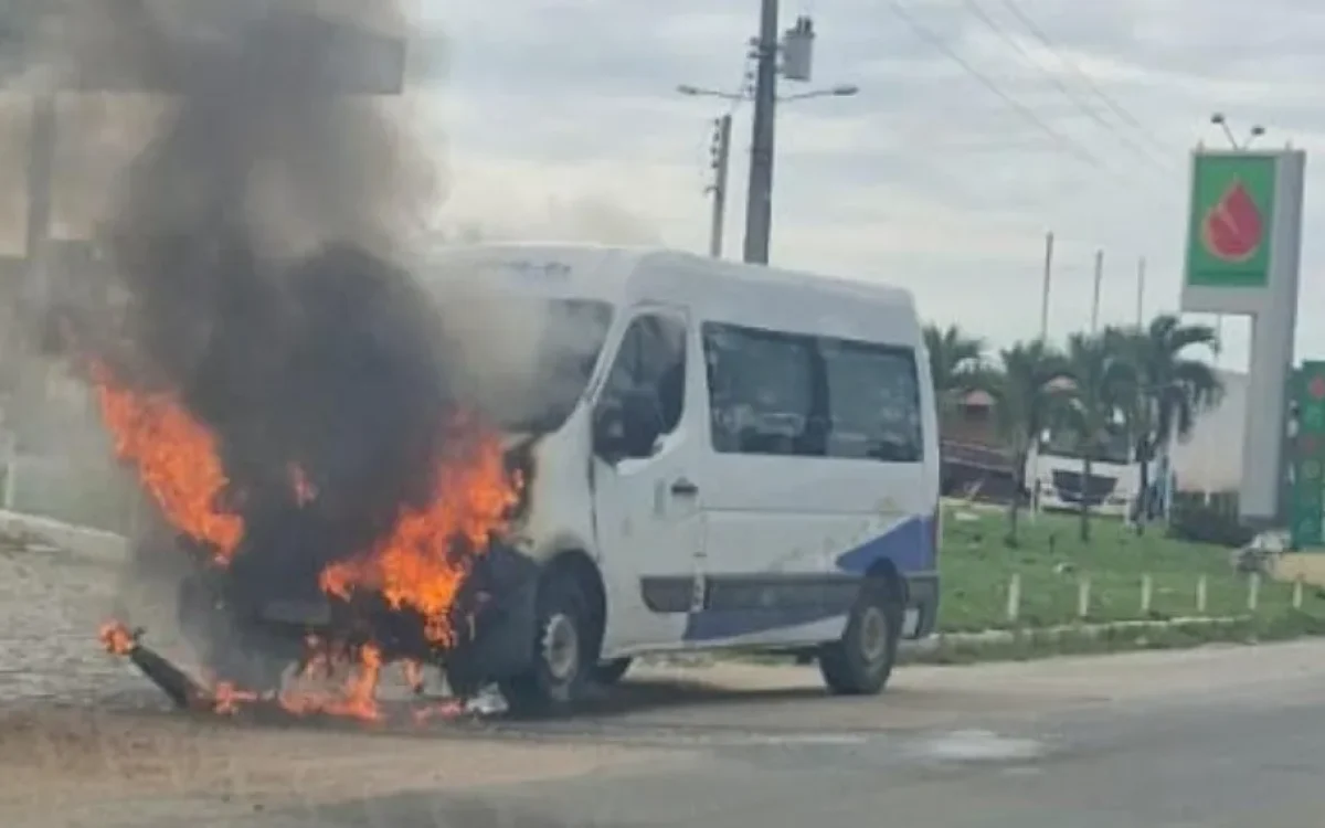 Até o momento, não há informações oficiais sobre o que teria provocado o fogo, que começou na parte dianteira do veículo. Também não foi divulgado quantas pessoas estavam na van nem se houve feridos.